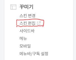 | 이제 티스토리 관리 매뉴 하단 꾸미기 에서 '스킨편집'으로 가셔서 오른족 상단 HTML 편집을 눌러서 편집화면으로 넘어가 주세요. | ![]() ![]() |