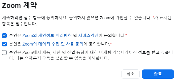 | 줌 가입하기 | |