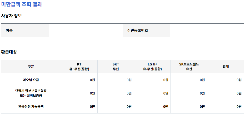 - 환급 금액이 다른 경우 해당 통신사 고객센터로 문의하시기 바랍니다.